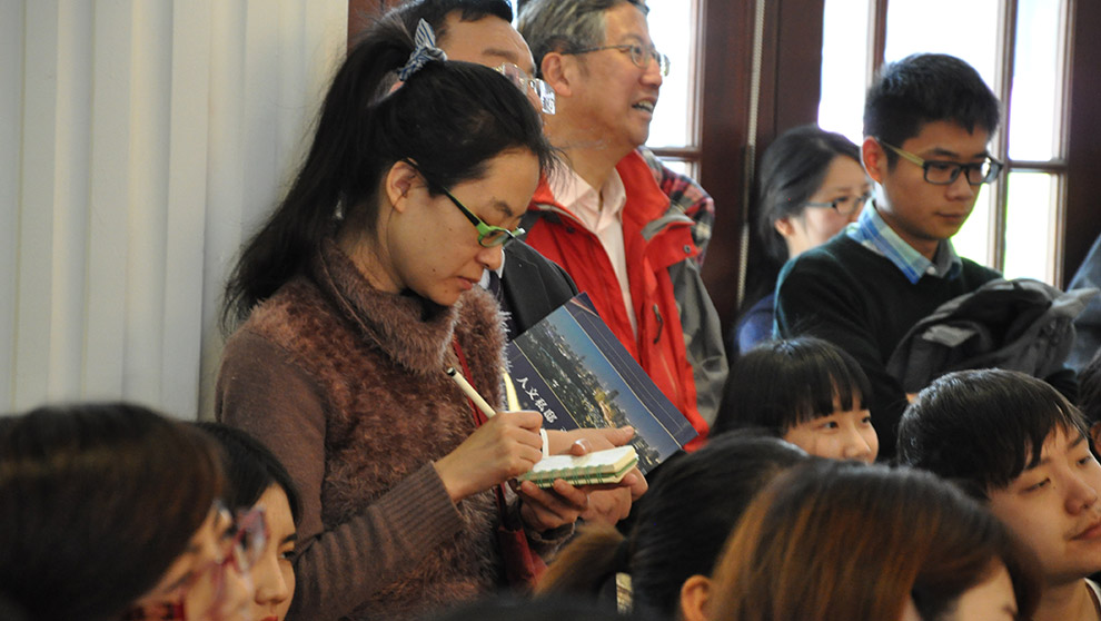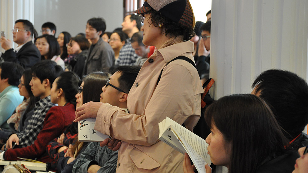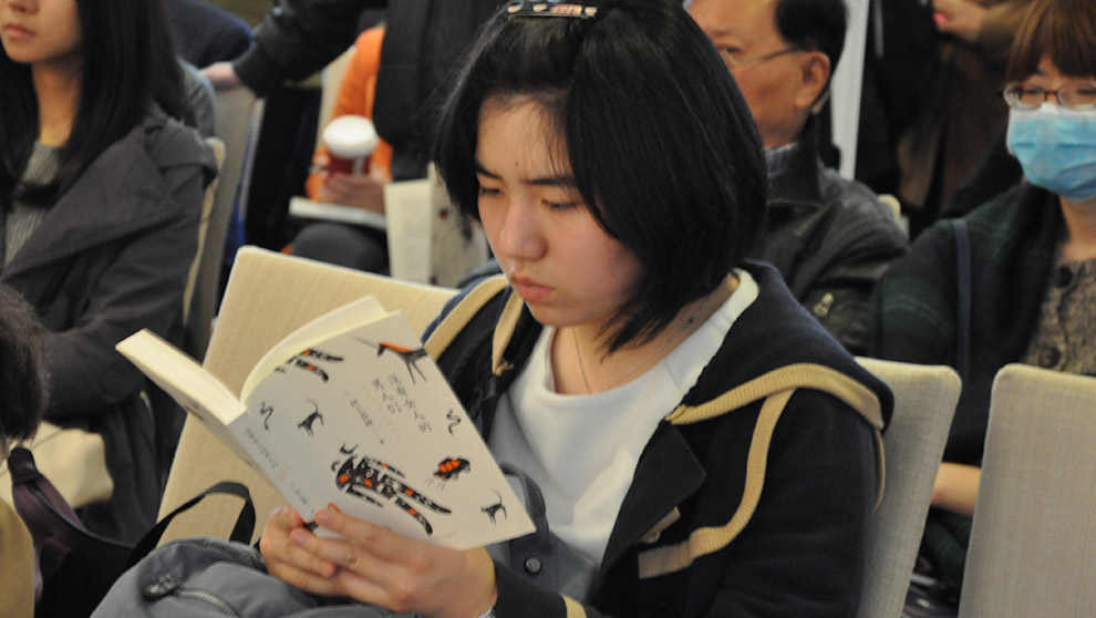 北辰優(yōu)美的朗誦音落,讀者還沉浸在《沒有女人的男人們》開篇的第一個故事中,本次活動拉開了序幕。北辰用聲音的藝術淋漓盡致地演繹了文字的藝術。林少華對此贊嘆不已:“聽北辰讀完,我竟發(fā)現(xiàn)原來我的翻譯是這樣的美妙。非常感謝!我甚至有一點嫉妒,他幾乎剝奪了文字藝術之美。”