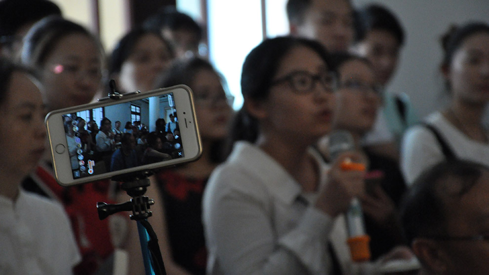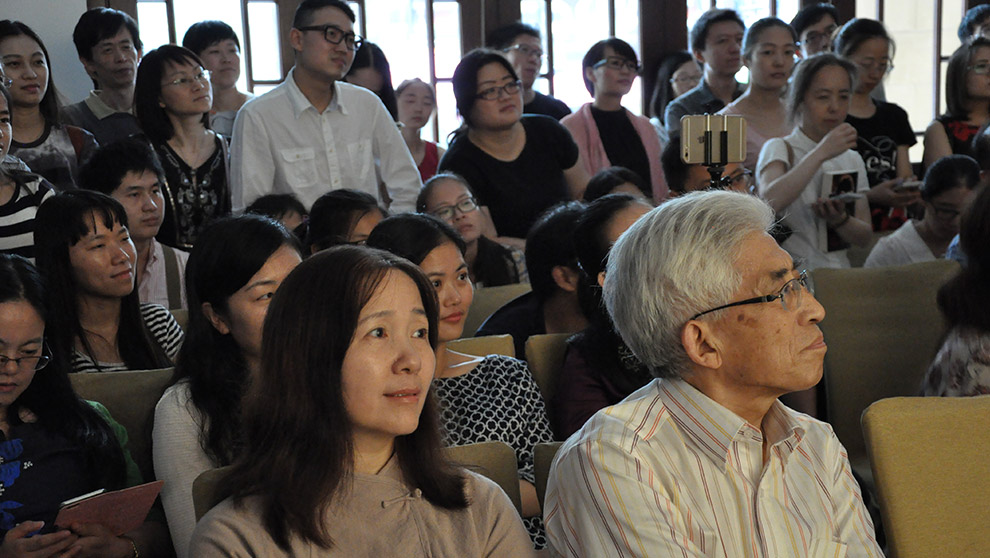演講伊始,嚴歌苓從少年時代跳獨舞的理想聊起,雖然她在跳舞上并沒有實現這個理想,但是脫下舞鞋開始寫作的那刻,她已然開始了人生的獨舞。“講故事其實是小說最最基本的一個元素,小說的產生是因為有故事,通過講故事,我們講出了哲學,講出了歷史,講出了人生觀,講出了人的心理學和行為學。”對此,嚴歌苓評價自己是一個耐心的聆聽者,具有一雙有同情心的耳朵。在公車上,她會抓取他人有趣的對話;在家里,她會邊干家務邊與美國闊太太通話,從一大篇廢話中發現一個精彩細節。所以,她有著豐富的故事素材可以去寫作。