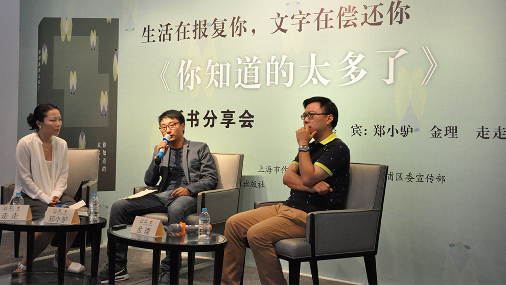 分享會伊始,走走以《你知道的太多了》一書的書名為引,用風趣幽默的話語展開了本次的對話。她這樣介紹這本書的題目:“今天鄭小驢要來跟我們講的書是《你知道的太多了》,當時他還開了一個玩笑,說‘我有一本書出來了,你知道嗎?’那個人就說‘你知道的太多了。’,這句話是一個可以進行反復的文字游戲,那么這本書到底寫了什么?”