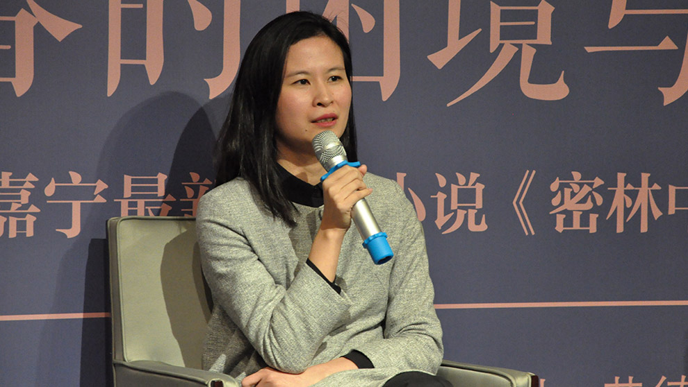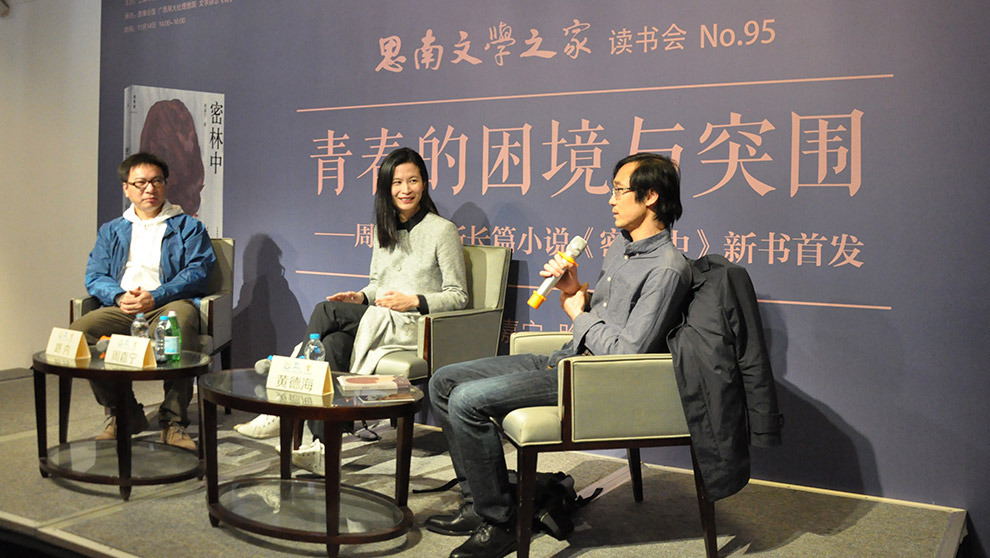 讀書會開始,黃德海向周嘉寧提出了問題“為什么給這本書起這個名字?”,周嘉寧表示,小說在第一章節的時候,寫的是21世紀初的一段經歷。那個時候,網上聊天并不發達,主要的聊天工具只有論壇?!澳菚r是青年時代最開心的一段日子。”她將那個時代比喻為走在平原上的時代。所謂走在平原上,是真的感覺在和小伙伴攜手并進,可以看清對方,看見每個人前進的姿態?!暗悄阕咧咧鴷l現前方突然出現一片森林,”周嘉寧說,“出現一片森林以后,你還是要前進,因為后退是無意義的,平原上的風光已經太熟悉了,或者說厭倦了。走到密林里以后,你看不見眼前的路,因為前面是樹林,你也看不到你的朋友,因為旁邊也都是樹林,你只能獨自一人面臨前方未知的道路。”黃德海認為書名《密林中》表現了一種密林茂盛的形象,其本身的意象也是完整的。路內覺得很多事物都在這個題目中被返照出來,被導引出來,人的心像一片密林,人的感情也像一片密林。